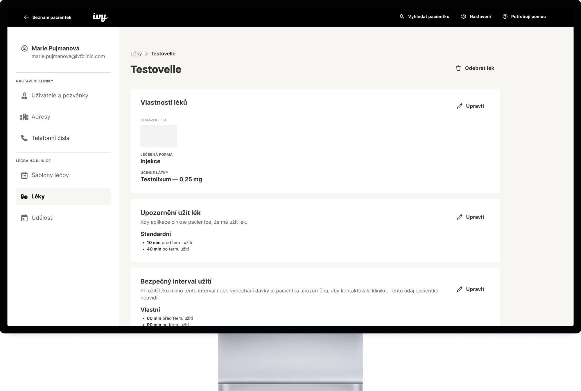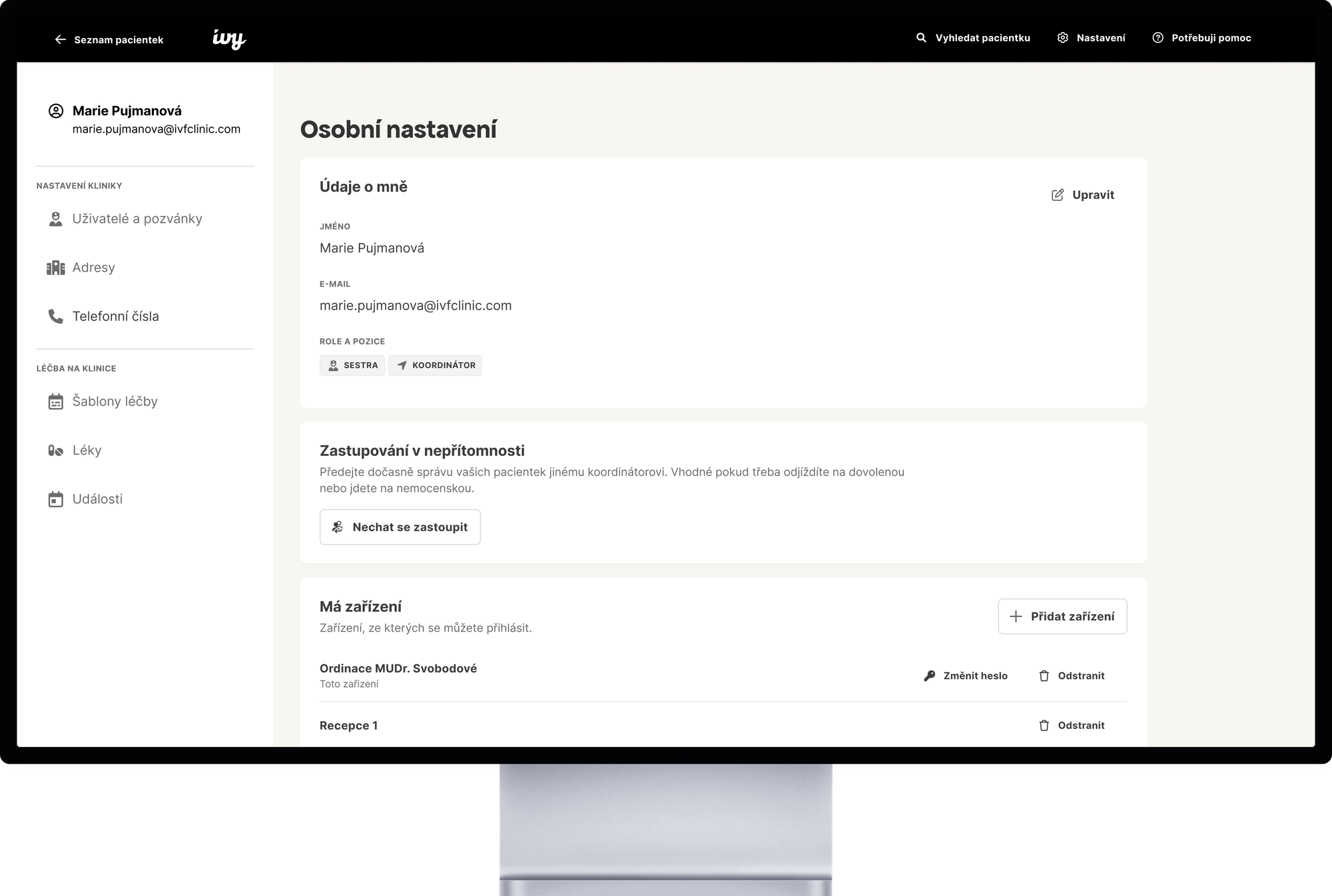 Ivy Assistant se skládá ze dvou částí. Těmi jsou administrace pro kliniky a mobilní aplikace pro pacientky.